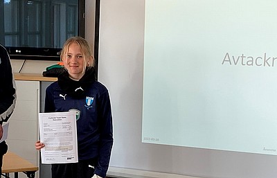 ”Hon visar en enormt stor vilja, både som spelare och domare. Hon är noggrann i förberedelserna inför match och strävar hela tiden efter att utvecklas i sin domargärning”, säger David Arvidsson, ungdomsansvarig i Hyllie IK.